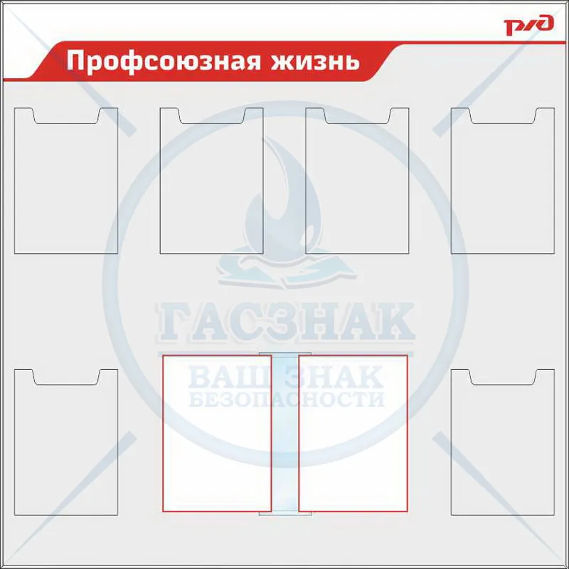 Стенд Приказы, инструкции РЖД, 10 карманов А4 пл. (1400х1200; Пластик ПВХ 4 мм, алюминиевый профиль; )